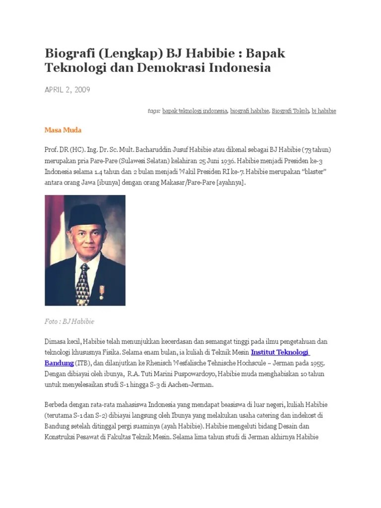 Tugas Bahasa Indonesia Tentang Biografi B.j. Habibie : Yang Bisa Mohon Tolong Isi Dengan Jawaban Yang Benar Tentang Biografi B J Habibie Terimakasih Brainly Co Id / Menurut kamus besar bahasa indonesia (kbbi), biografi adalah riwayat.